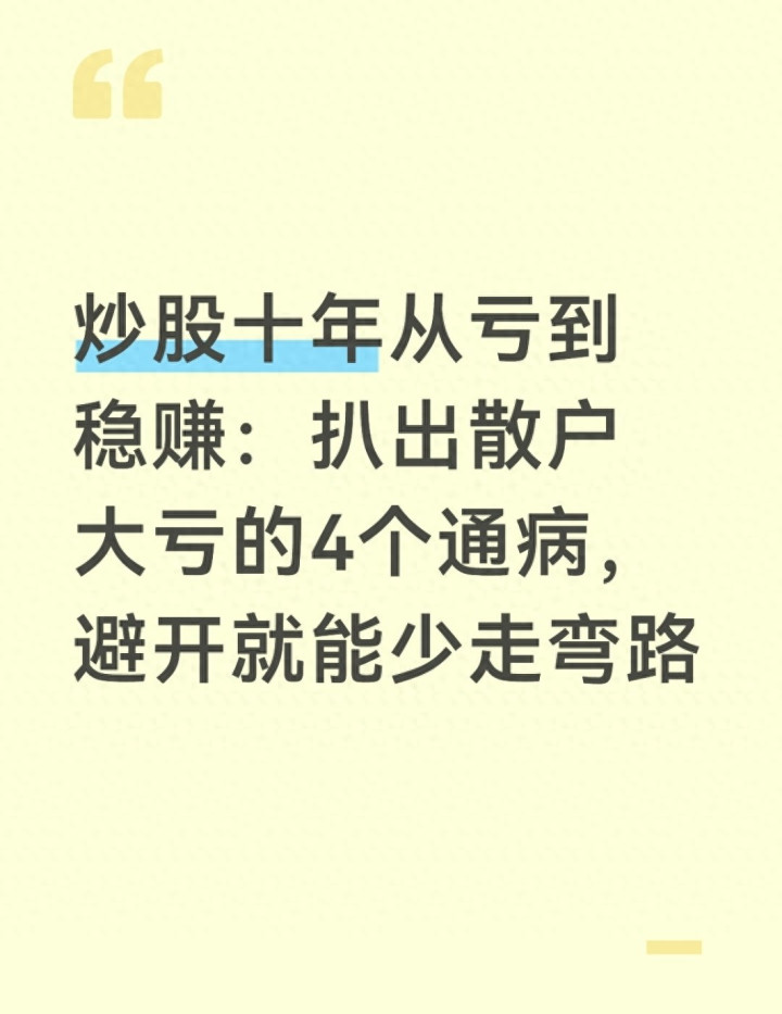 十年炒股路,我从亏得睡不着觉,到现在能稳定盈利,最大的感悟是:炒股没有“一夜暴富”的捷径,能赚到钱的人,都是把“避坑”做到了极致。散户之所以亏钱,不是因为技术差,而是因为一次次踩中同一个坑,一次次被自己的人性弱点打败。