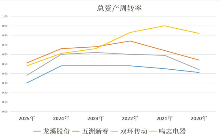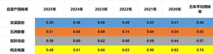 龙溪股份、五洲新春、双环传动三家的周转速度在过去五年上升。