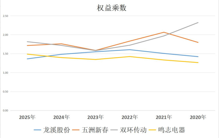 最新三季度财务杠杆:双环传动>五洲新春>鸣志电器>龙溪股份