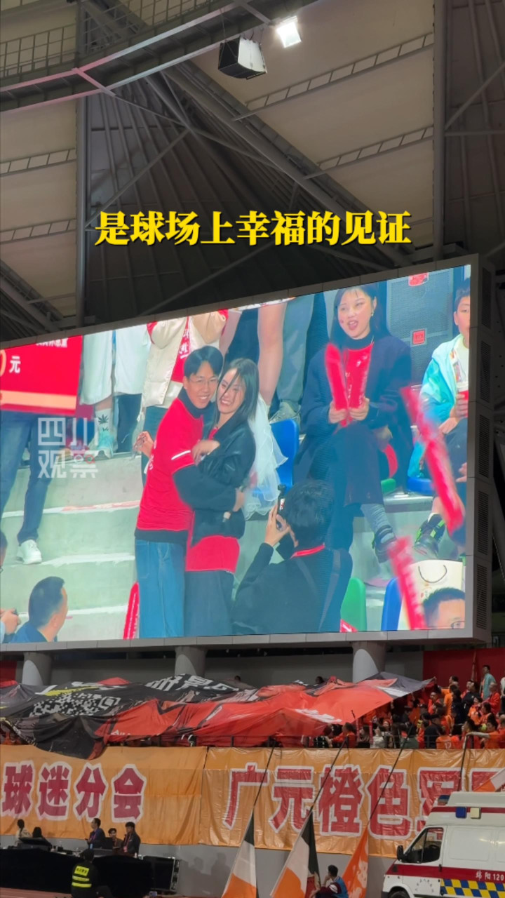 欢乐是底色,温情是内核。当裁判员意外抽筋,看台上响起的是齐声的“雄起”与鼓励;有球迷场边求婚,全场瞬间化身“气氛组”,高呼“嫁给他”将幸福推向高潮;比赛前几天一位乐山球迷突发疾病去世,看台上打出的横幅让人动容。